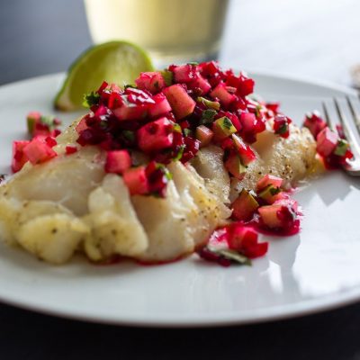 Ингредиенты:филе белой рыбы;свекла;яблоки;петрушка;соль, специи;оливковое масло;лайм или лимон;