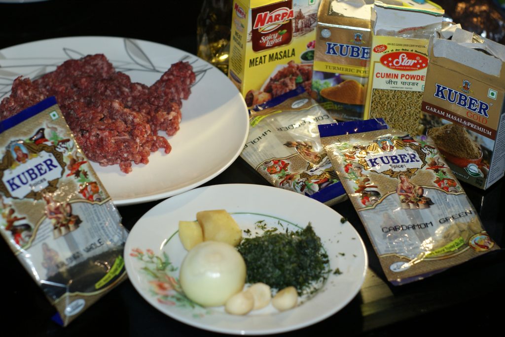 Смешать все специи в блендере. Из кардамона предварительно достать семена. Добавить специи в фарш.