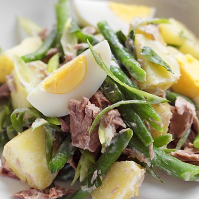 Открываем баночку тунца. Лучше, если это будет кусковой тунец. Сливаем жидкость. Смешиваем все ингредиенты. Заправляем майонезом. Можно добавить по вкусу соли. Салат с фаршированным авокадо готов! Вы можете смело подавать его на стол.
