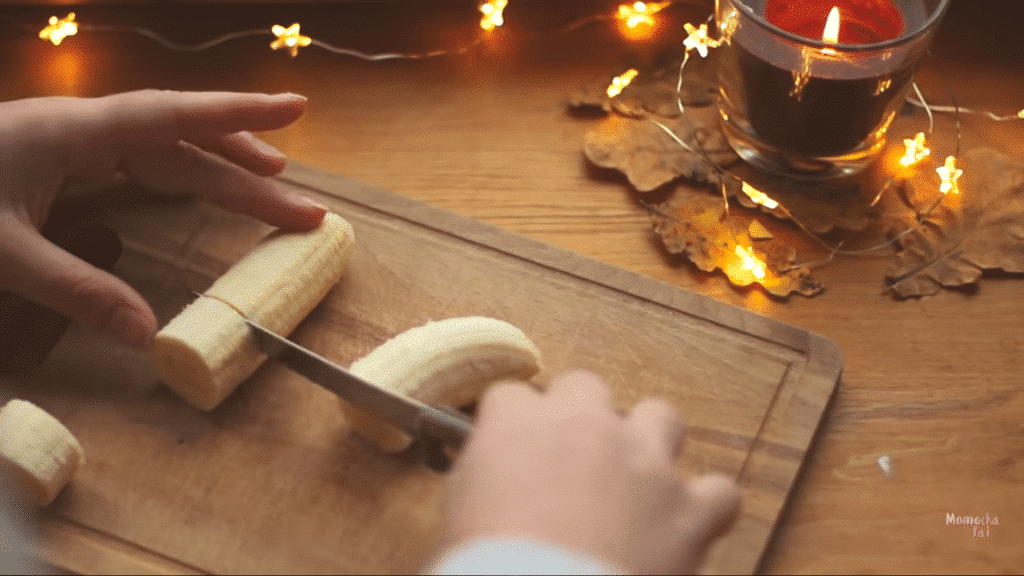 Отрежьте от банана края по 5-6 см.