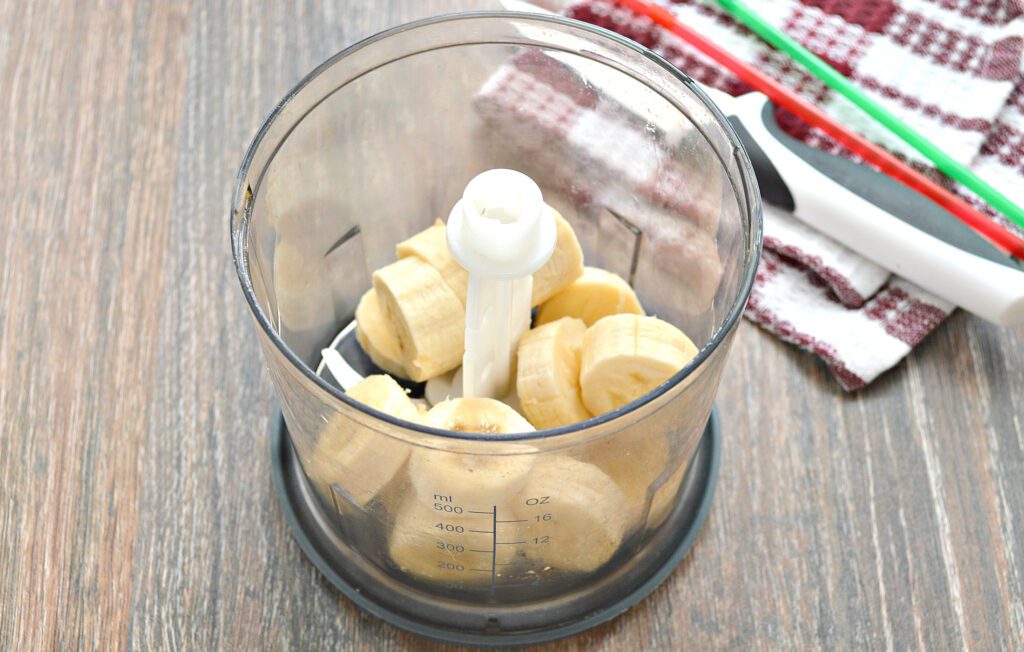 Шаг 1Очищаем банан и нарезаем его небольшими ломтиками.