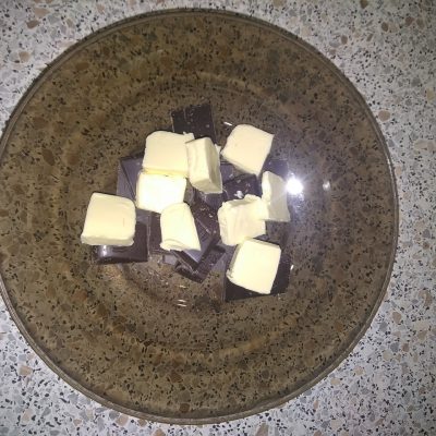 Теперь нам остается только сделать глазурь, для этого в небольшую тарелочку разламываем плитку шоколада, добавляем сливочное масло, молоко, и ставим в микроволновую печь на 1-2 минуты, при этом периодически перемешивая. Также можно сделать все это на водяной бане