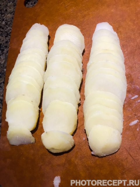 Делаем начинку номер 2: вареный картофель чистим и режем кругляшками.
