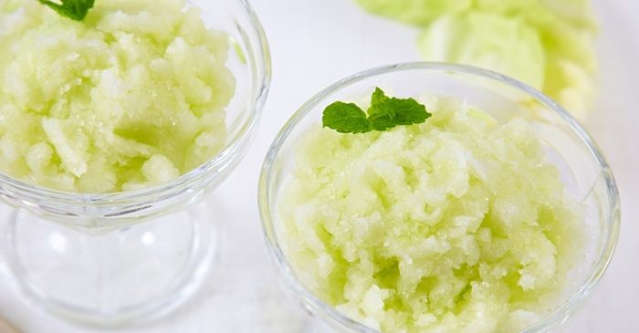 По прошествии времени.. используя ложку, соскребите мерзлый слой и выложите его в охлажденные креманки. Украсьте, например, листиками мяты.