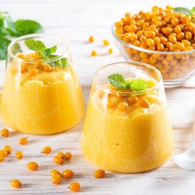 Украсить по желанию листиками мяты и цельными ягодами ежевики.