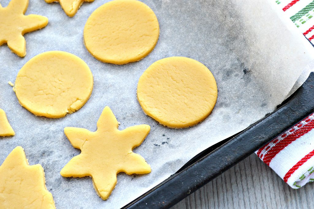 Тесто раскатываем (толщина пласта – 3 или 4 мл). Используя специальные формочки либо обычный стакан, вырезаем печенье.