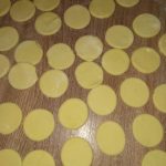 Далее заготовку из теста выкладываем на ровную поверхность и стаканом или специальной формой выдавливаем в нем одинаковые кружочки, это и есть наши заготовки.
