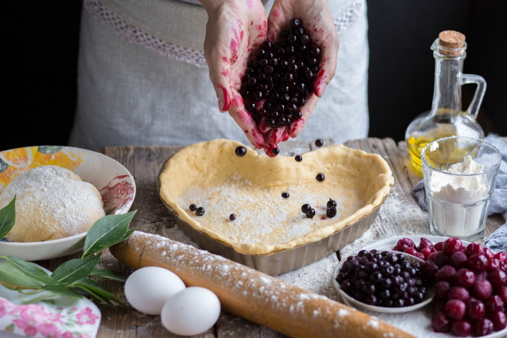 Присыпаем слегка крахмалом. Выкладываем смородину.