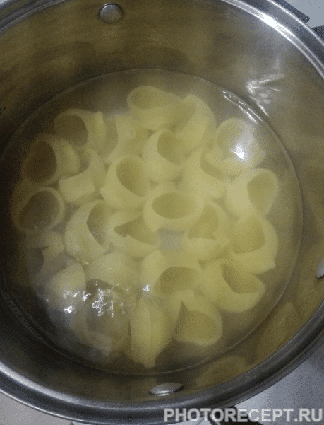 Шаг 1Для начала наливаем воду в кастрюлю и ставим ее кипятиться. Как только вода закипит, закладываем макароны. Варим 3 минуты. Очень важно не передержать макароны, чтобы они не развалились.