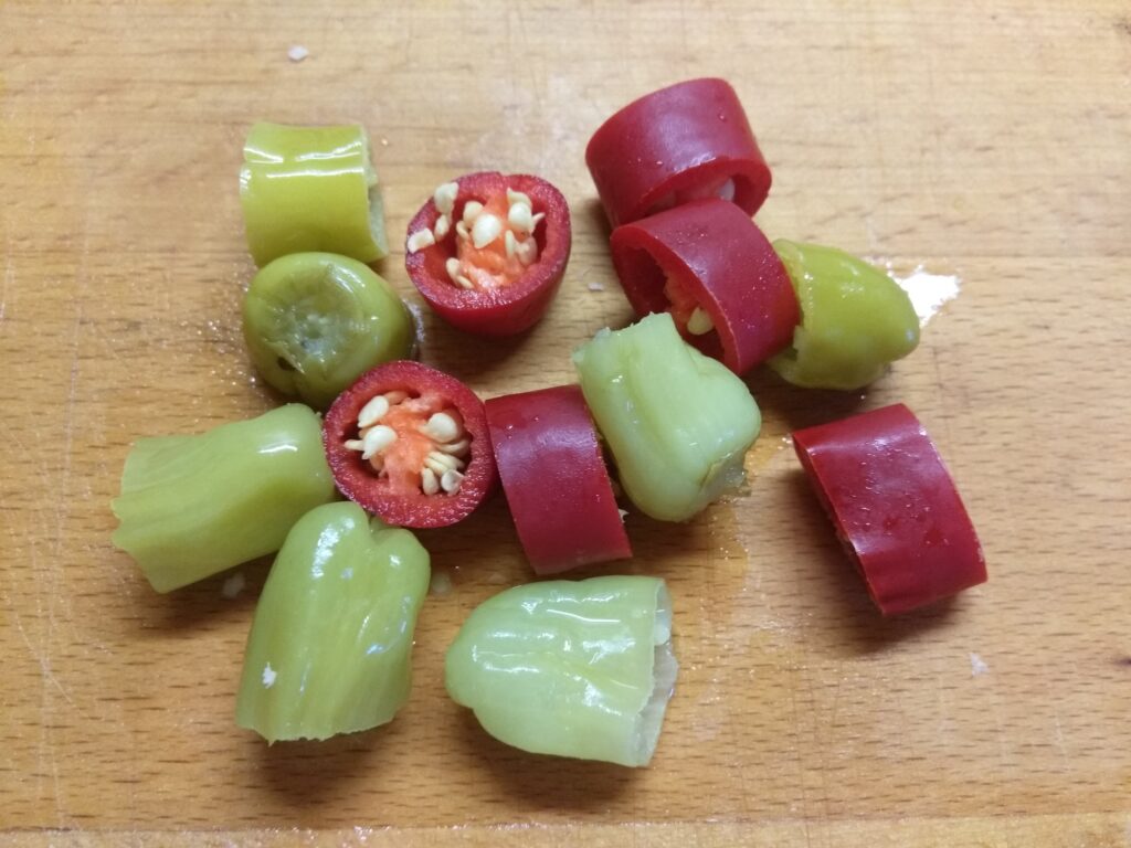 4. Перчики нарезать кольцами, высотой около 3-4 мм.