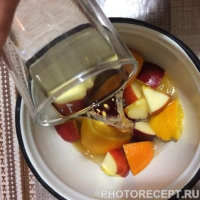 После, нарезаем яблоки и апельсин (совет: с апельсина можно выдавить сок, а с яблока убираем косточки).