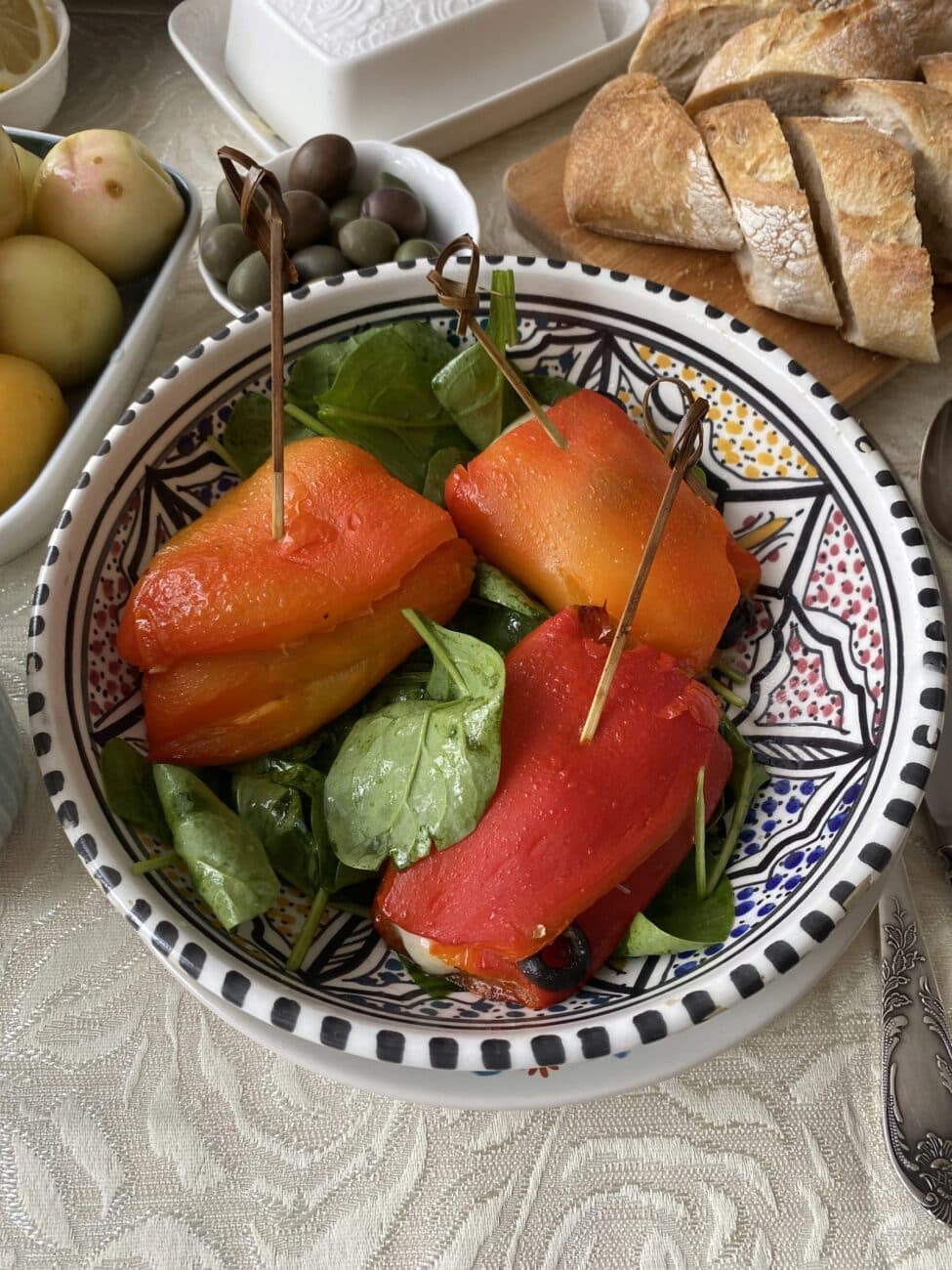 Можно подавать перец с халуми, как закуску, а можно уложить на "подушку" из зелени шпината, получается что-то вроде салата, все по вкусу. Приятного аппетита!