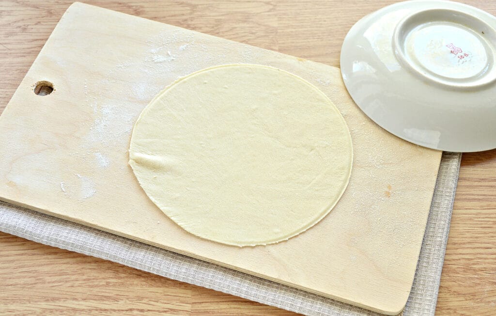 Из приготовленного теста делаем круглые заготовки для чебуреков. Для этого тесто делим на порционные кусочки, которые раскатываем в тонкие лепешки. Чтобы края лепешек-заготовок были ровными, используем в качестве трафарета блюдцем, к примеру.