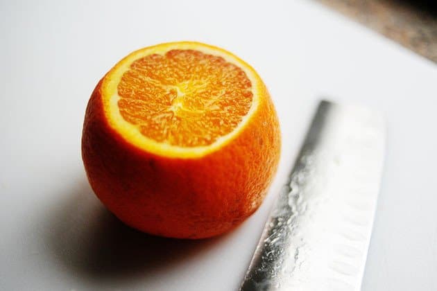Шаг 1Отрезать у апельсина верхнюю и нижнюю части.