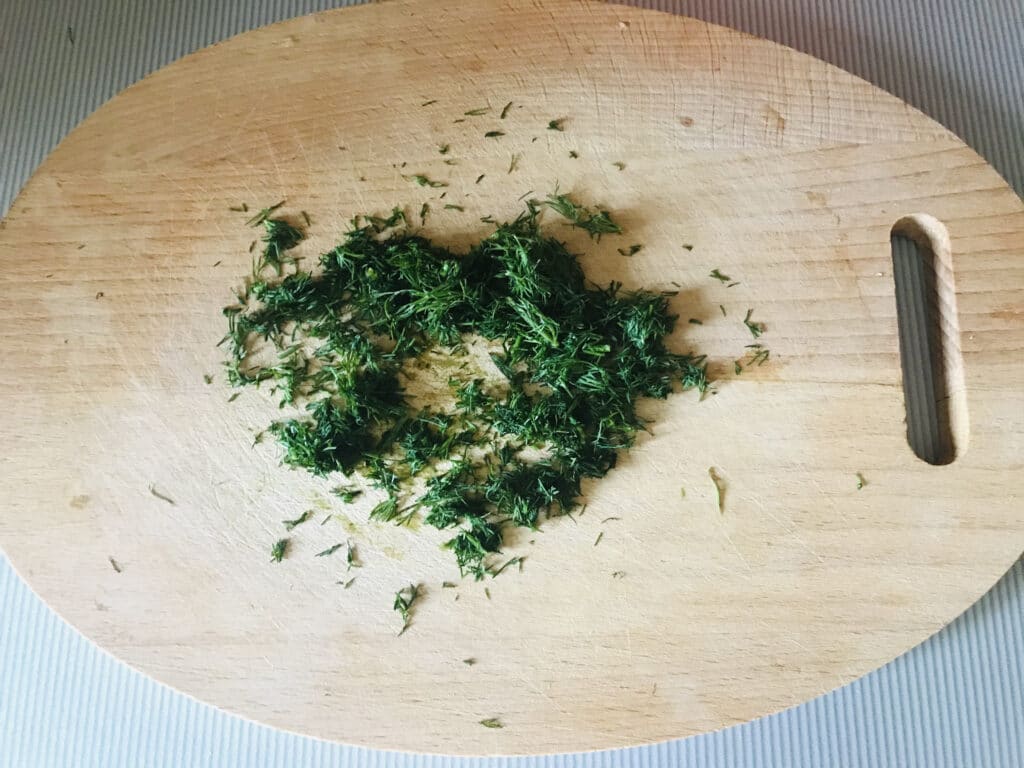 Теперь соединяем все жидкие ингредиенты с укропом и перемешиваем.