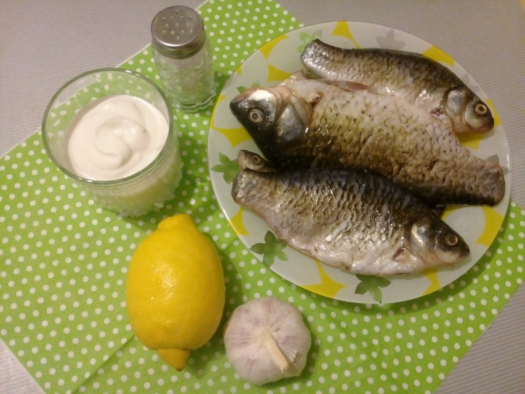 Речной карась не обладает большой гастрономической ценностью. Это небольшая по размеру, костлявая рыбка, которая к тому же иногда имеет устойчивый запах тины. Редко, кто специально покупает карасей для приготовления ужина, чаще – это небогатый улов рыбака – любителя. С помощью лимона, чеснока и свежей, жирной сметаны можно исправить положение, запечь рыбку и наслаждаться вкусным ужином.