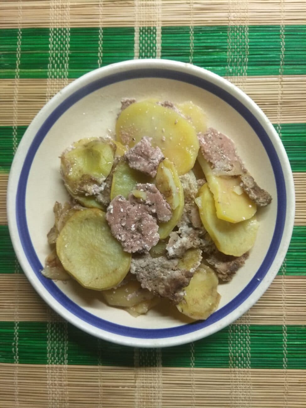 Очень простое, но вкусное и сытное блюдо из всего лишь пары основных ингредиентов – картофеля и мяса. В соус еще добавим немного сметаны, чтобы было сочнее и вкуснее. Я также добавила приправ, чтобы блюдо было ароматнее
