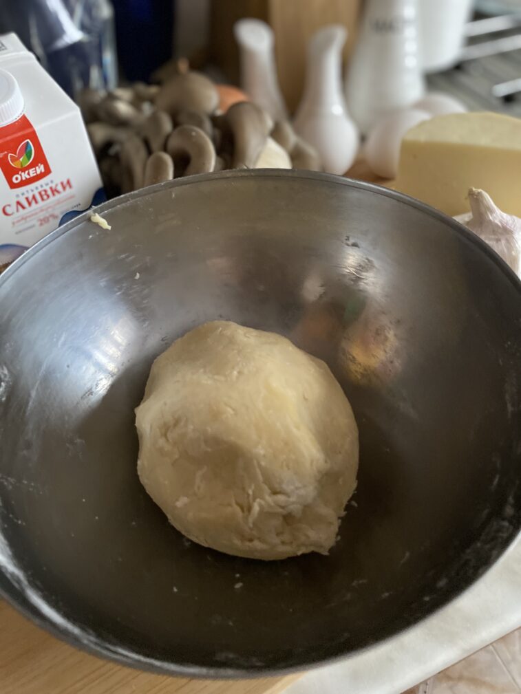 Замесим мягкое податливое тесто, отложим тесто в холодильник, пока готовим начинку.