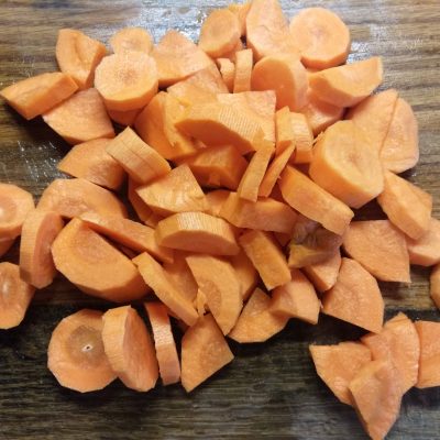 3. Морковь также помыть, очистить и нарезать, но гораздо мельче, чем тыкву, ведь морковь варится намного дольше.