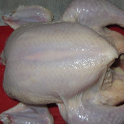 Шаг 1Целую курицу помыть, обрезать все лишнее. Разрезать вдоль грудки.