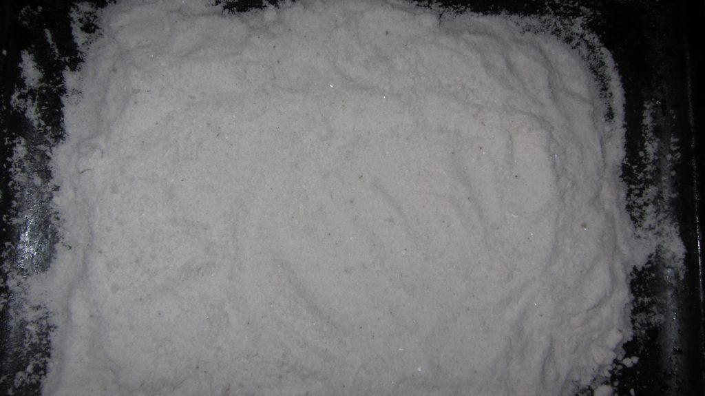 Сверху на соль выложить нашу подготовленную целую курицу.