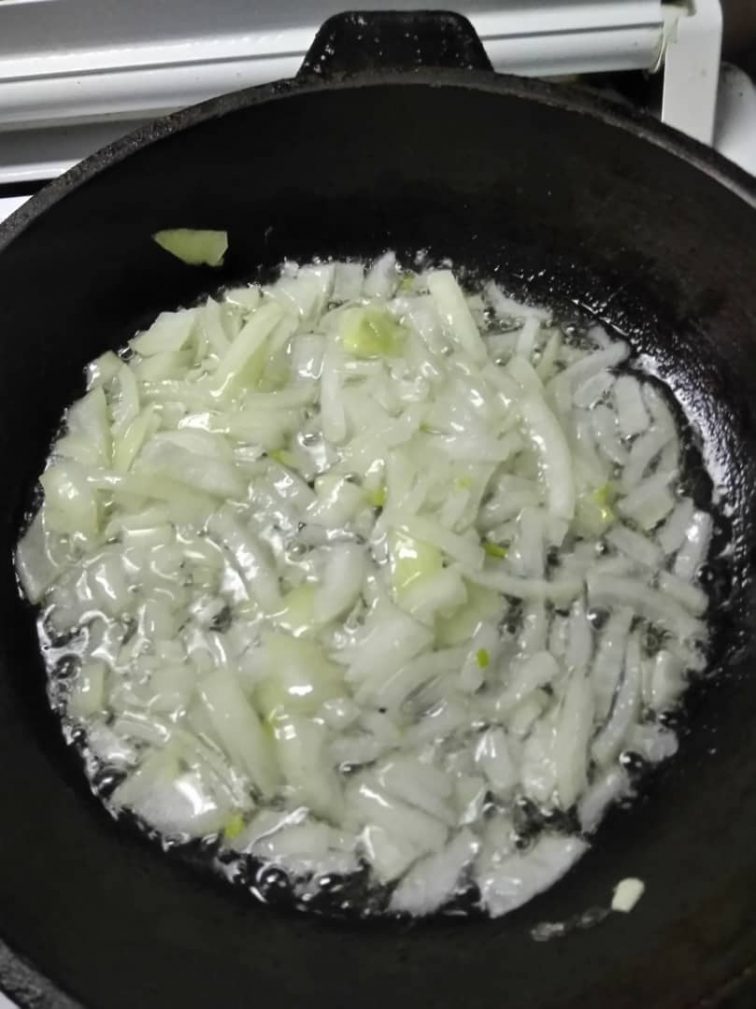 Шаг 1Мелко нарезать лук. Поставить сковороду на плиту. Разогреть на среднем огне. Добавить растительное масло. Разогреть немного и добавить обжариваться лук до золотистого состояния.