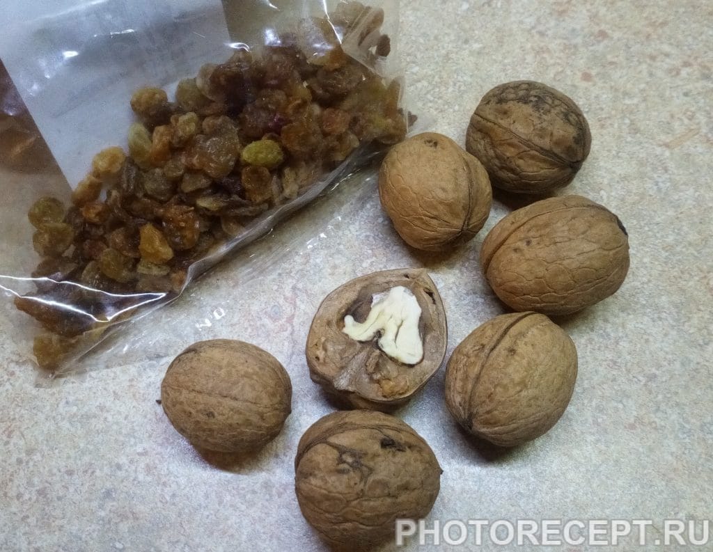 Очищаем грецкие орехи от скорлупы. Понадобиться около 7-8 штук. Если решили купить уже очищенные орехи, то берите около 200 грамм, этого будет достаточно. Орехи размельчаем на более мелкие кусочки.