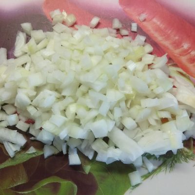 Шаг 11. Лук помыть, очистить от шелухи и нарезать четвертинками. Обжарьте на растительном масле до легкого золотистого цвета.