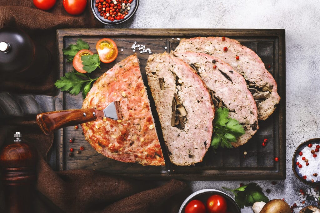 Заворачиваем мясной хлеб в фольгу и ставим рулет в духовку, уже нагретую до 200 градусов. Запекаем около 40 минут или до готовности. Если хотите подрумянить верхушку, снимите фольгу и и запекайте мясной хлеб еще около 10 минут.