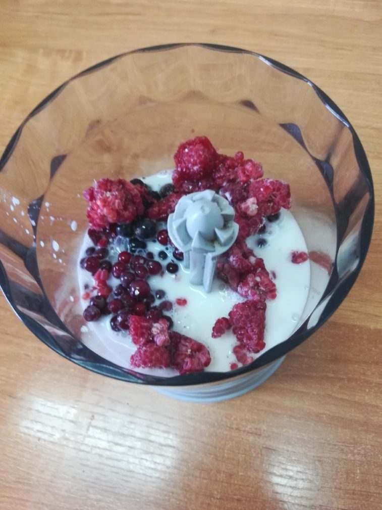 Ягоды - можно взять любые на ваш вкус. У меня нашлась малина, клюква, ирга и вишня