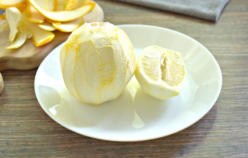 Шаг 1Очищаем апельсин и половинку лимона от кожуры. Цедру можно не выбрасывать, а найти ей применение, к примеру, при выпечке десертов.
