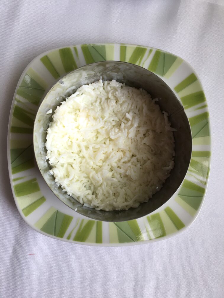Шаг 1Отвариваем до готовности овощи, очищаем, натираем на мелкой терке. Яйца отвариваем, чистим и натираем желтки и белки отдельно. Селедку мелко режем кубиками. Репчатый лук очищаем и мелко рубим. Перекладываем лучок в небольшую миску и заливаем кипятком. Даем настоятся 5 минут (уйдет резкий запах), сливаем жидкость, откладываем до использования. Яблоко можно натереть сразу, но лучше сразу перед выкладываем слоя, так как оно темнеет и получается не очень красивая прослойка у салата.