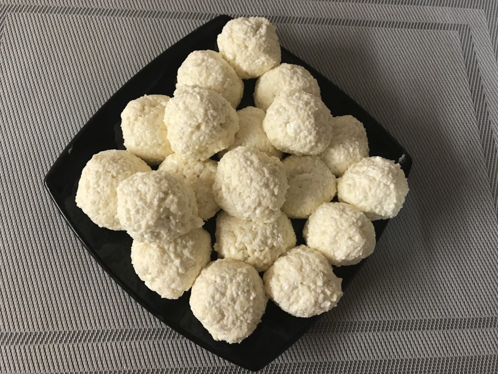 Вылепленные творожные шарики обвалять в муке и слегка расплющить пальцами.