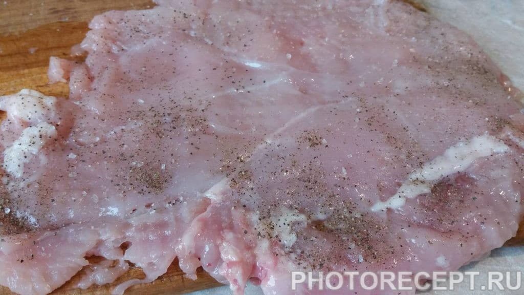 Картофель трем на терке, отжимаем, укладываем слоем на грудки. Добавляем немного соли.