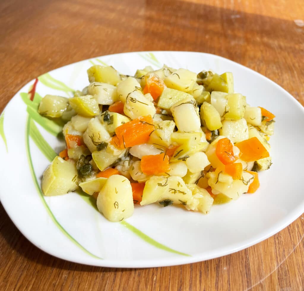 Добавить по вкусу специи. Все перемешать. Тушить до полной готовности овощей. Ароматный гарнир из овощей готов! Подавать блюдо горячим. Приятного аппетита!