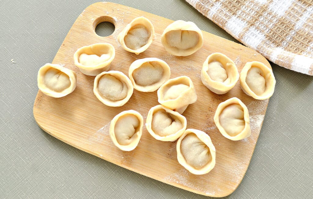 Отвариваем порцию пельменей с индейкой и тыквой. Остаток пельменей замораживаем. При варке воду посолить, добавить лавровый листок.