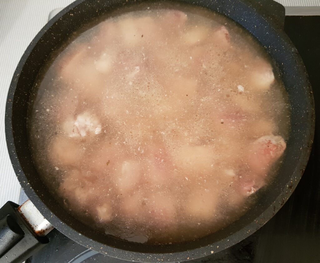 Затем залить мясо кипяченной водой так, чтобы она полностью покрывала продукт. Тушить на медленном огне в течение часа.