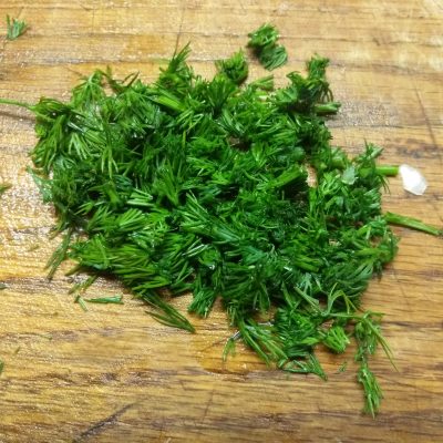 5. Укроп промыть, мелко нарезать. Добавить к грибам.