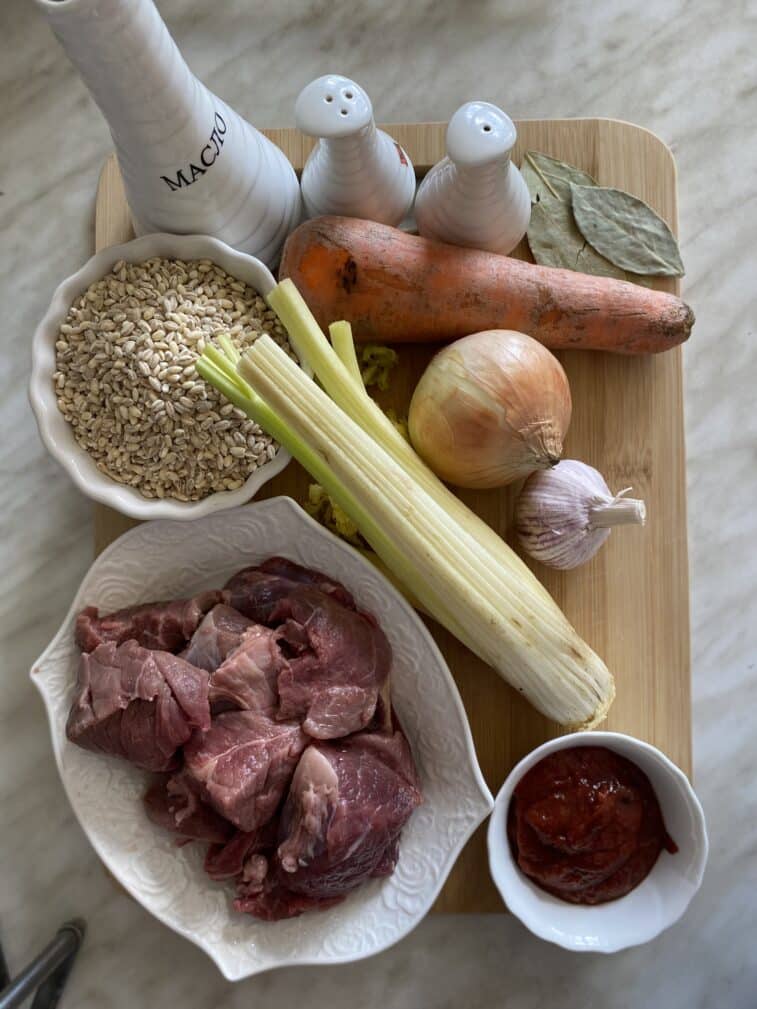 Перловую крупу промоем в нескольких водах и замочим в холодной воде на время приготовления мяса.