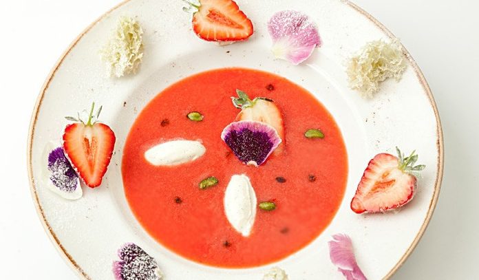 Легкий, освежающий суп из клубники — блюдо для настоящих гурманов. Для его приготовления нужно взять 1 кг спелых ягод клубники, пару апельсинов, 100 г маскарпоне… Потребуется также 2 ложки сахара, стакан ледяной крошки, немного перца и соли для пикантности.