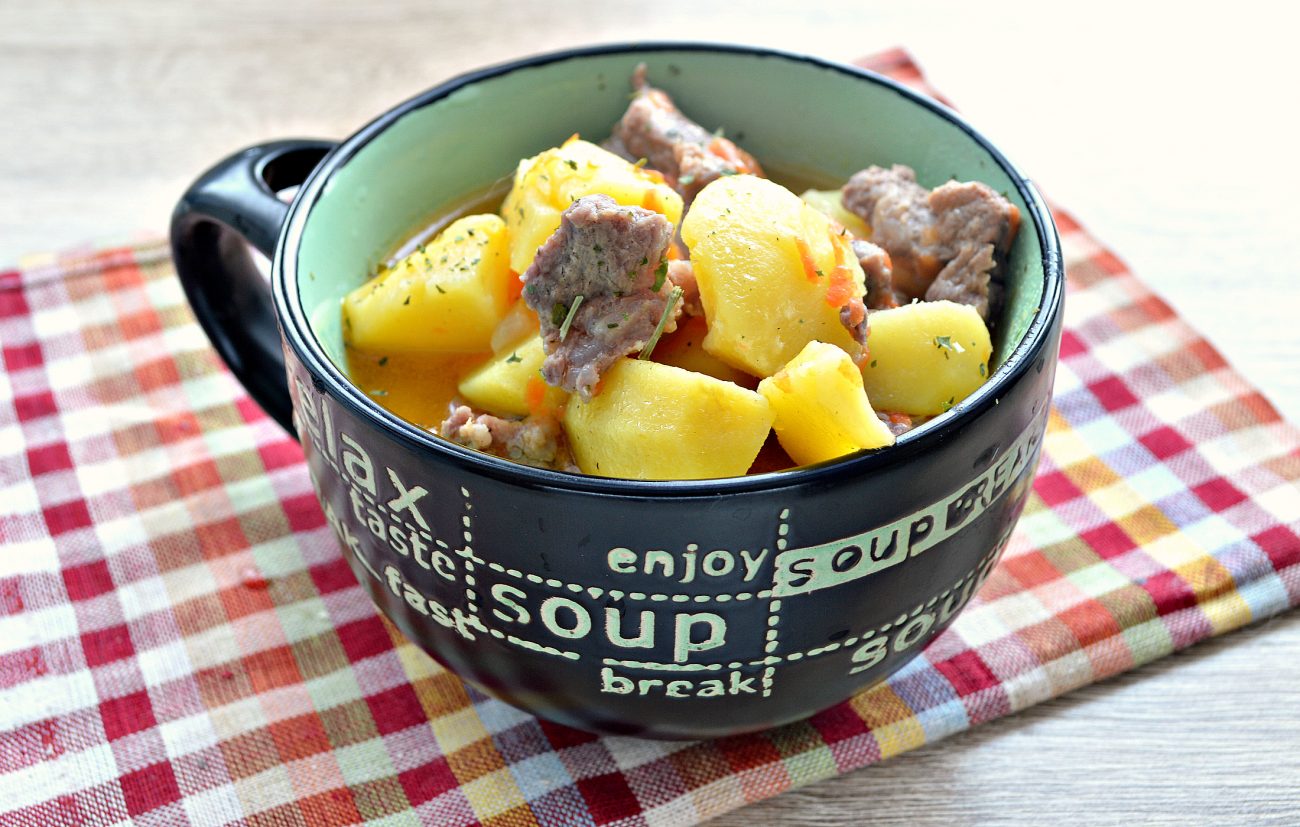 Для приготовления сытного блюда, которое, кстати, можно предложить в качестве второго к обеденному меню, потребуется размороженная мякоть свинины, несколько клубней картофеля, морковка, лук, специи и растительное масло. Тушить свинину будем в кастрюле. Подробности в рецепте.