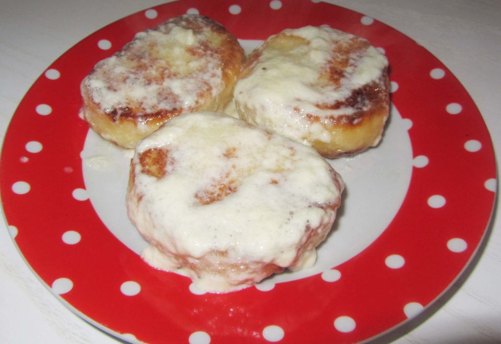 Еще один рецепт с детства. Ароматный, полезный завтрак для деток и взрослых. Чтобы блюдо получилось вкусным, выбирайте жирный домашний творог средней влажности. Перед приготовлением перетрите его через сито. Сметану тоже лучше брать домашнюю, иначе соус вовремя приготовления расслоится.