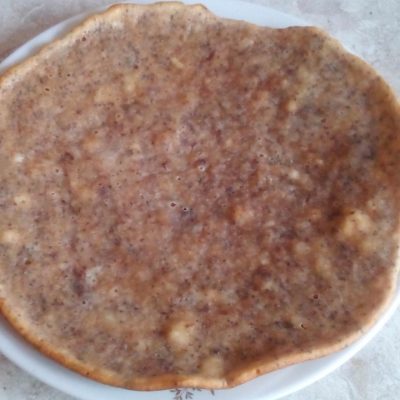 Смазываем растительным маслом сковороду или круглую форму для выпекания. Разогреваем духовку до 180 градусов. Вливаем и запекаем в течении 30 минут каждую тарелку с тестом по отдельности. Получится 4 коржа за 2 часа. Пока один готовится, второй остывает в холодильнике и так по очереди.