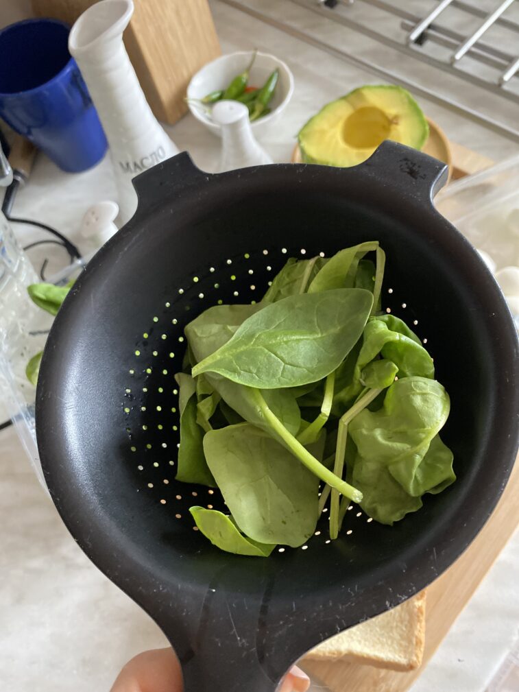 Второй приготовим так - на поджаренный хлеб выложим шпинат с моцареллой, яйцо в смятку и авокадо.