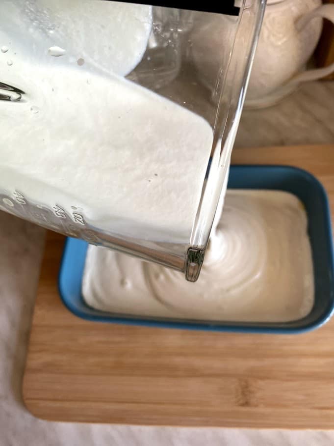 В чашу блендера выложим творог, сахар, соль, яйцо. Добавим молоко.