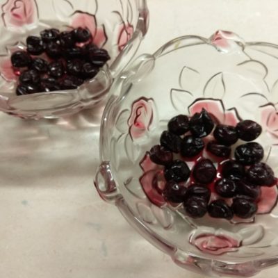Шаг 11. Подготовить круглую форму для десерта. Черешню промыть, удалить косточки. На дно посуды разложить по несколько ягод черешни.