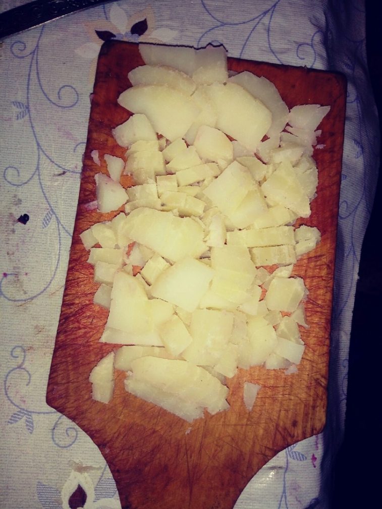 Шаг 1Картофель нарезаем небольшими кубиками.