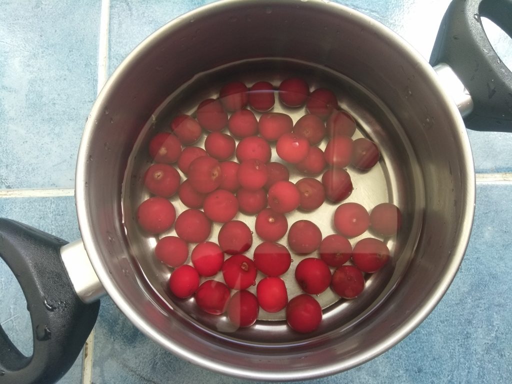 Шаг 11. Из воды, 250 грамм вишен и сахара сварить компот.