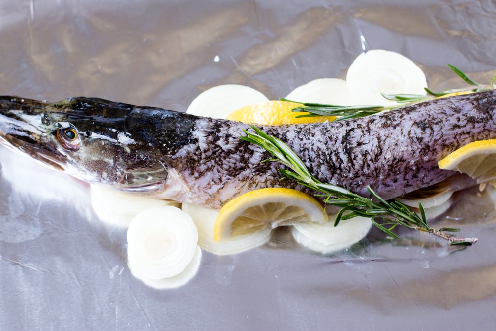 Щуку будем запекать целиком, в фольге. Удалите внутренности, обрежьте плавники и хвост. Голову оставляем, убираем только жабры, иначе будет горчить.