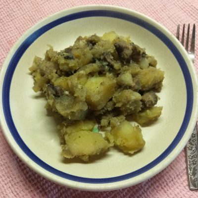 Для приготовления данного блюда нам понадобится: картофель, лук, плавленный сыр, жаренные грибы (шампиньоны).